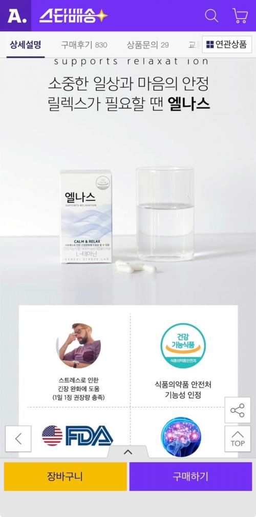 [옥션] 엘나스 스트레스 긴장완화 기능성 건강기능식품 (17,330원/무배) > 국내핫딜
