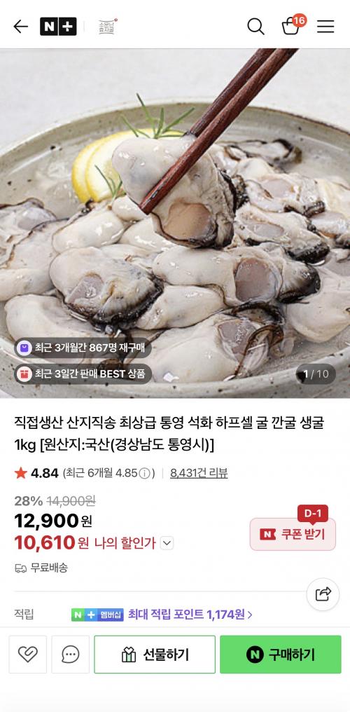 통영 산지직송 생굴 1kg 네이버 특가입니다.