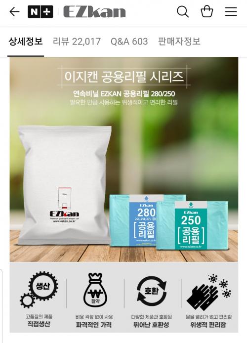 [네이버] 이지캔 공용 리필 쓰레기봉투 20롤 (13,400원/무료) > 국내핫딜