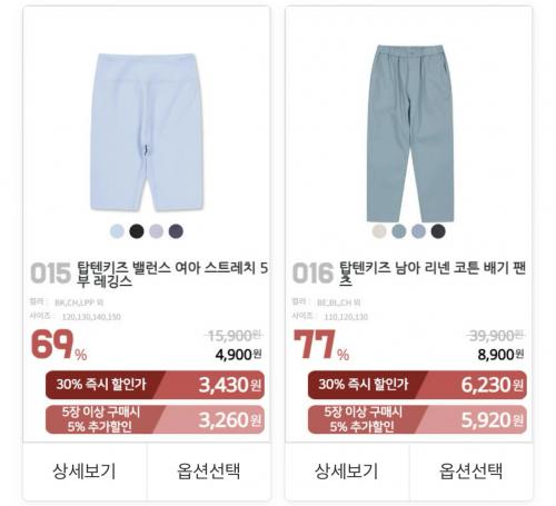 기본 반팔티, 바지 등 괜찮은거 많아요