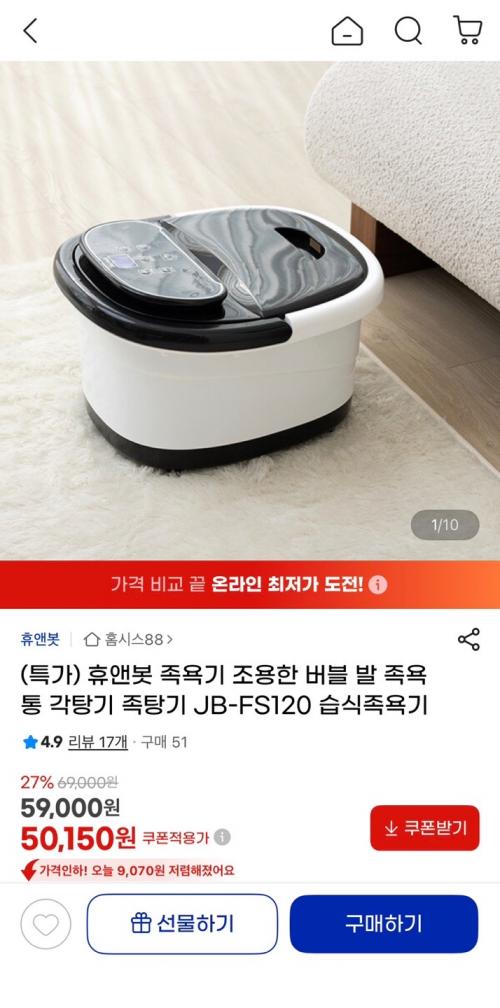 [지마켓] 휴앤봇 조용한 버블 습식 족욕기 (50,150원/무배) > 국내핫딜