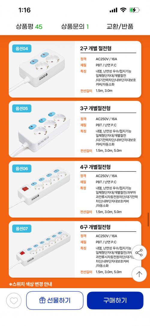 화재 대비되는 멀티탭이라서 안전하고 좋아요!