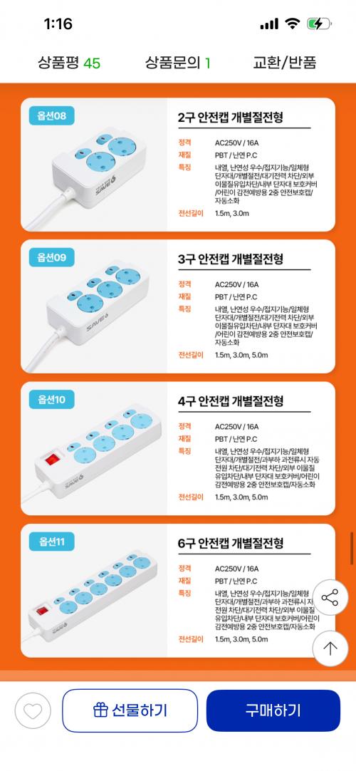 개별전원, 안전캡 있는것도 있어서 용도따라 구매할 수 있습니다!