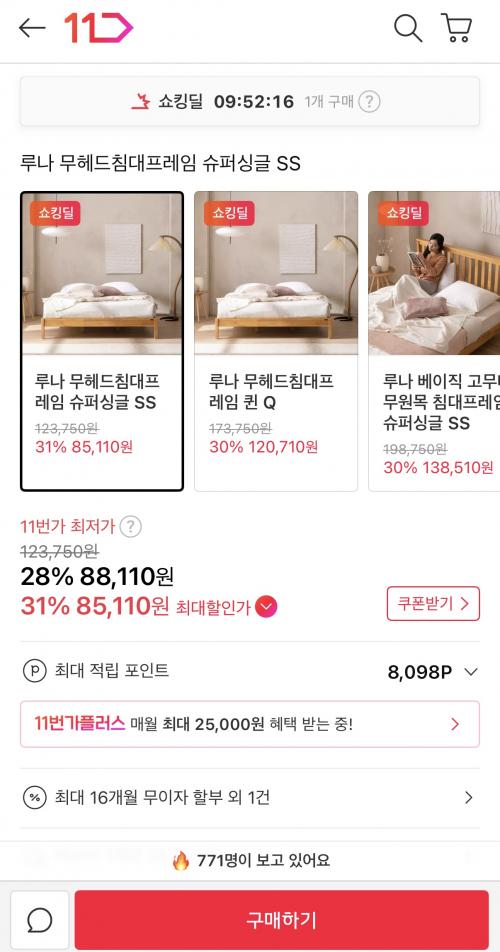 [11번가] 루나 무헤드침대프레임 슈퍼싱글 SS (88,110원/착불) > 국내핫딜