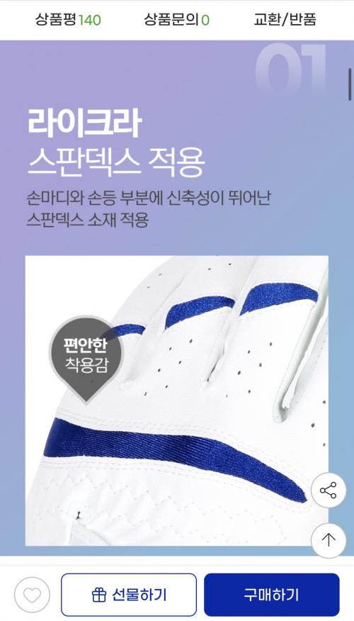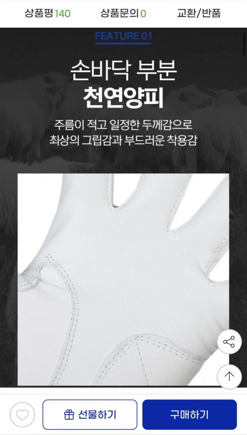 손바닥 부분이 천연 양피로 되어 있어 그립감이 안정적이고 착용감도 쾌적한 편입니다.