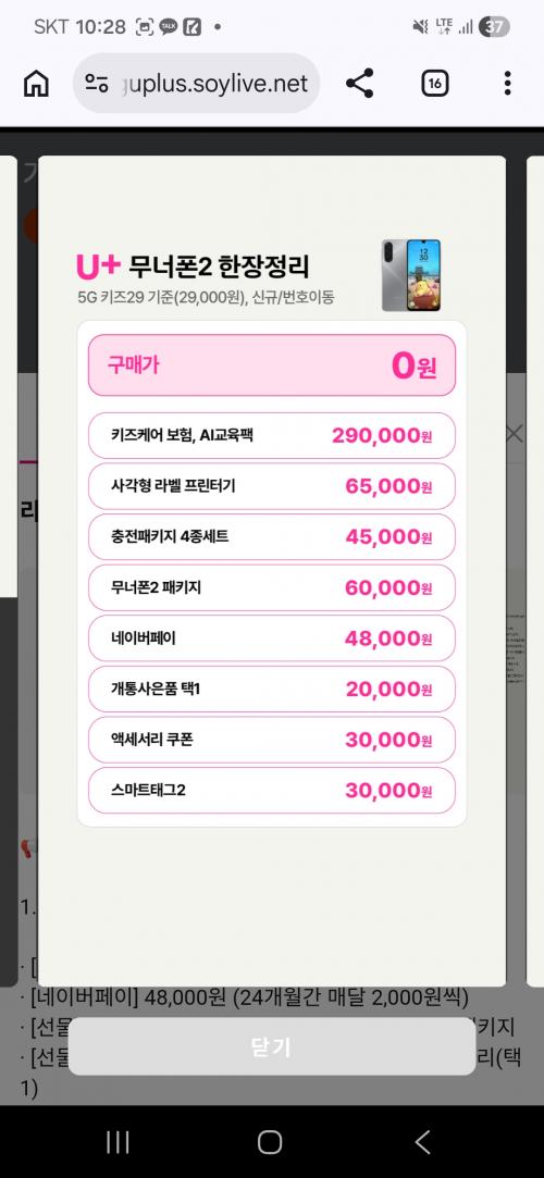 아이 스마트폰 고민중이면 U+ 키즈폰 무너에디션2 조건 확인해보세요.
