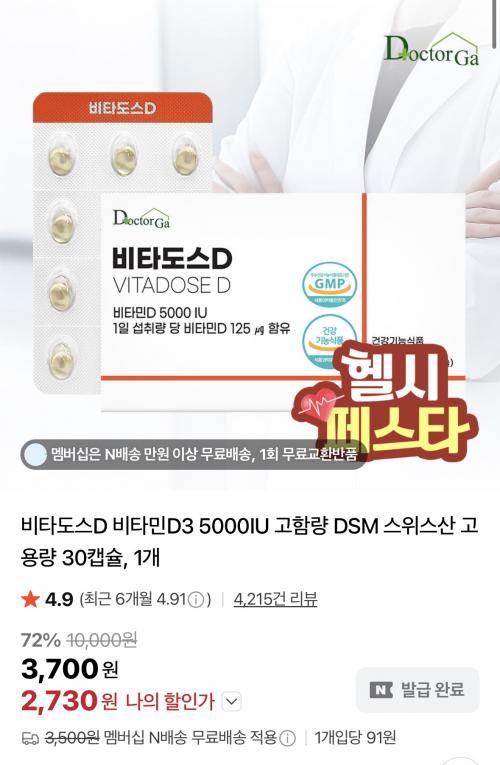 추가 섭취가 필요해 고함량 비타민D 섭취해도 괜찮습니다