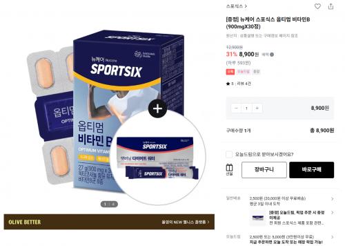 [올리브영] 뉴케어 스포식스 옵티멈 비타민B 900mg 30정 (8,900원 / 2,500원)