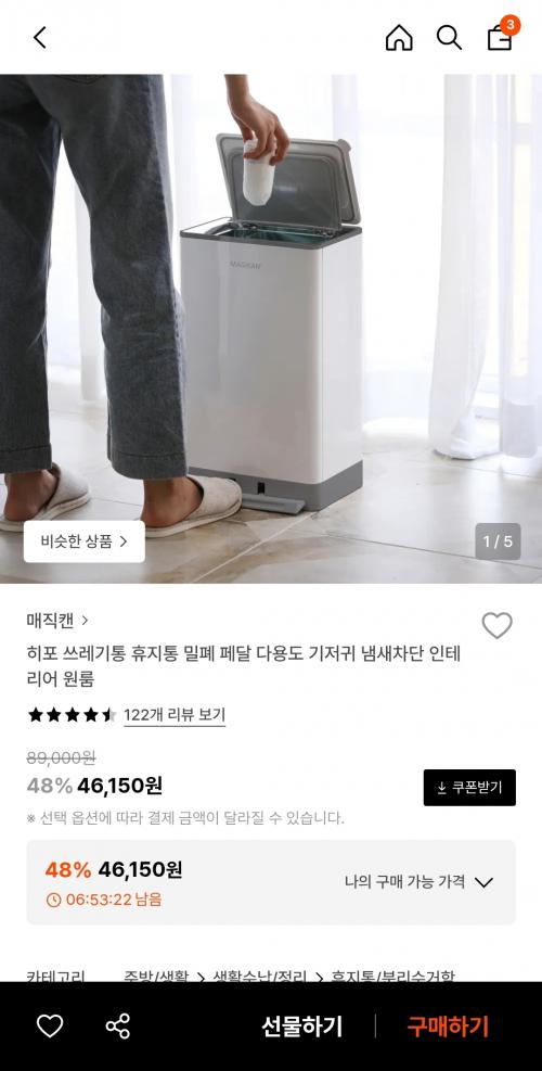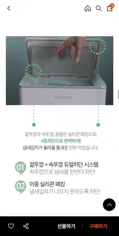 [29CM] 매직캔 히포 냄새차단 밀폐 휴지통 (46,150원/무배) > 국내핫딜