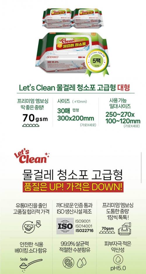 [옥션] 물걸레 청소포 5팩(30*5 150매) (6,900원/무배)