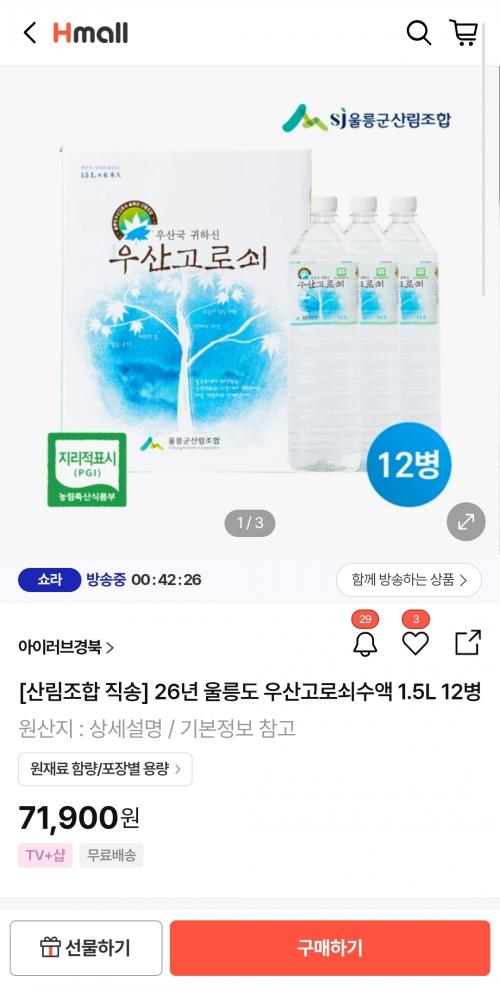 26년산 울릉도 우산고로쇠수액 딜 떴네요