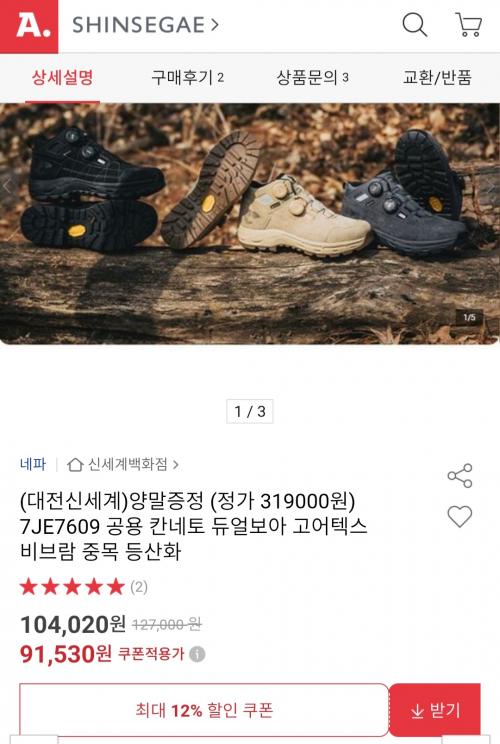 완전방수에 비브람 메가그립 창, 듀얼 보아까지 들어간 모델이라 중목이라 발목 지지력도 괜찮고, 발등이랑 발볼 다이얼로 조절할 수 있어서 산행할 때 편할 듯합니다.
