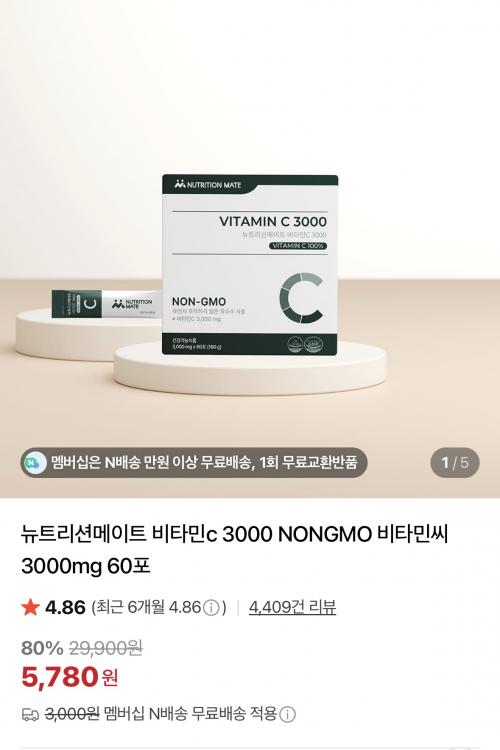 [네이버] 뉴트리션메이트 비타민c 3000mg 60포(5,780원/네멤무료) > 국내핫딜