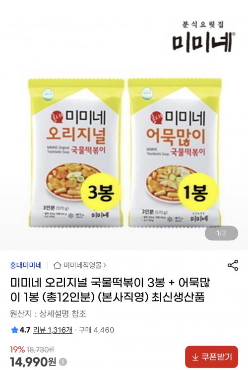 [G마켓] 미미네 국물떡볶이 3봉 + 어묵많이 1봉 (14,990원)