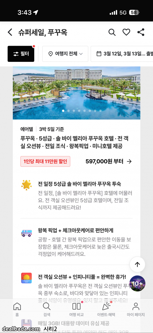 전 일정 5성급 솔 바이 멜리아 푸꾸옥에서 투숙 예정인데
