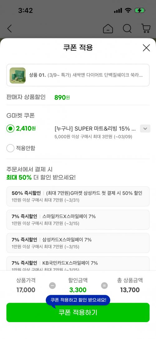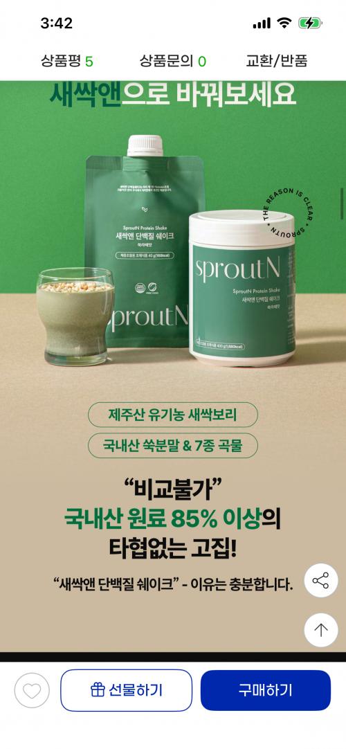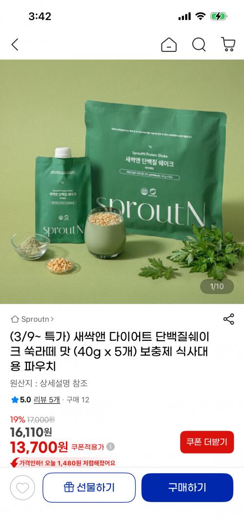 [지마켓] 다이어트 단백질쉐이크 쑥라떼 맛 (40g x 5개) (가격/배송비) > 국내핫딜