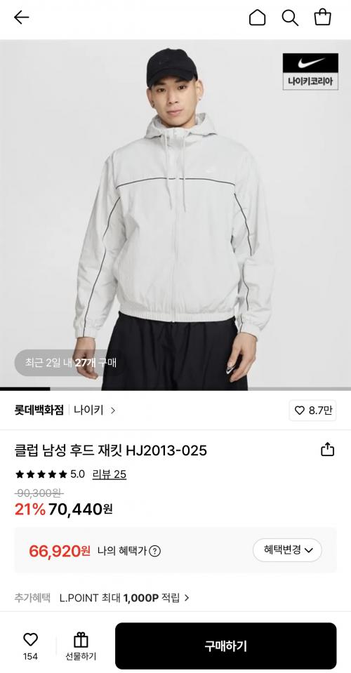 [롯데온] 나이키 클럽 후드 재킷 (66,920원/무료) > 국내핫딜