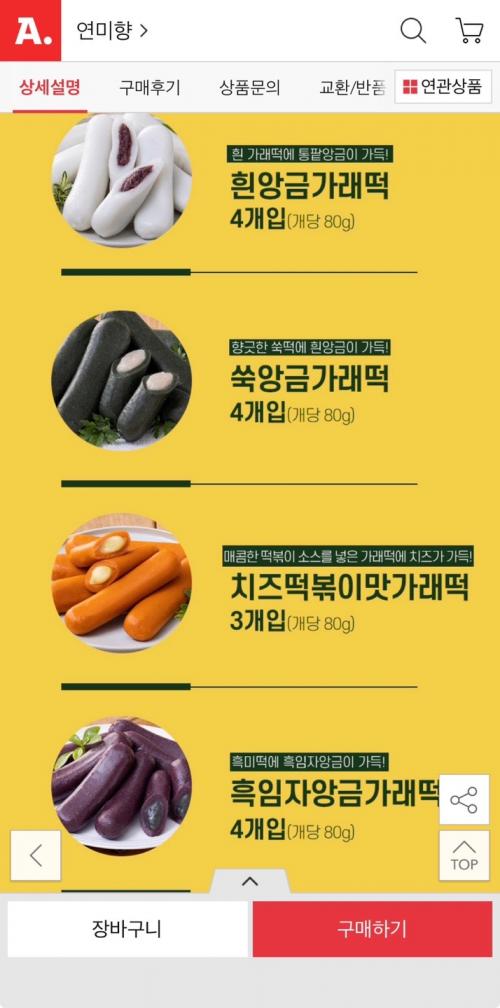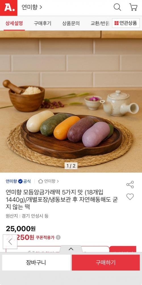 [옥션] 굳지 않는 연미향 모듬앙금가래떡 5종 18개입 (21,250원/4,000원) > 국내핫딜