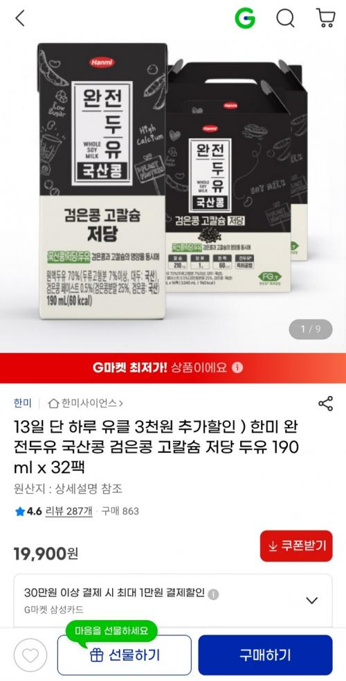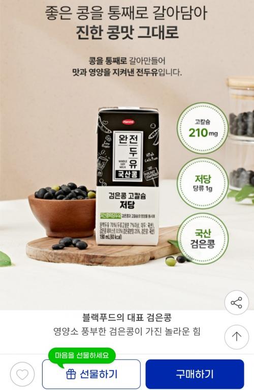 고소하고 맛있는 검은콩 저당 두유입니다.