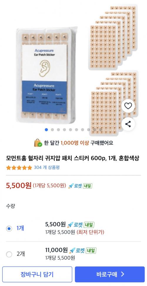 [쿠팡] 혈자리 귀지압 패치 스티커 600개 (5,500원/무배) > 국내핫딜