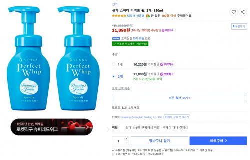 [쿠팡] 센카 스피디 퍼펙트 휩, 150ml, 2개 (11890원/와우무배) > 국내핫딜