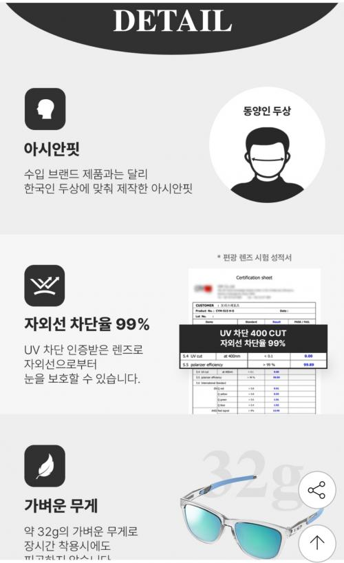 자외선 차단율 99%에 32g이라 무게도 가볍고 내구성도