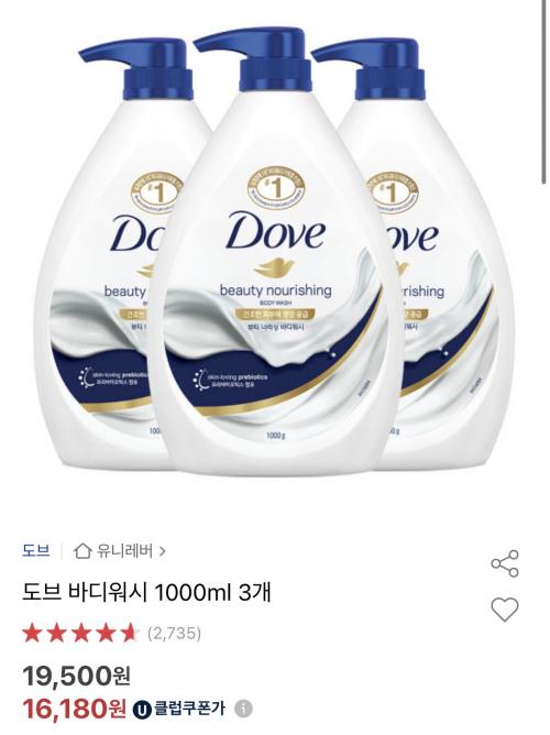 [옥션] 도브 바디워시 1000ml 3개 (15,040원/무료)