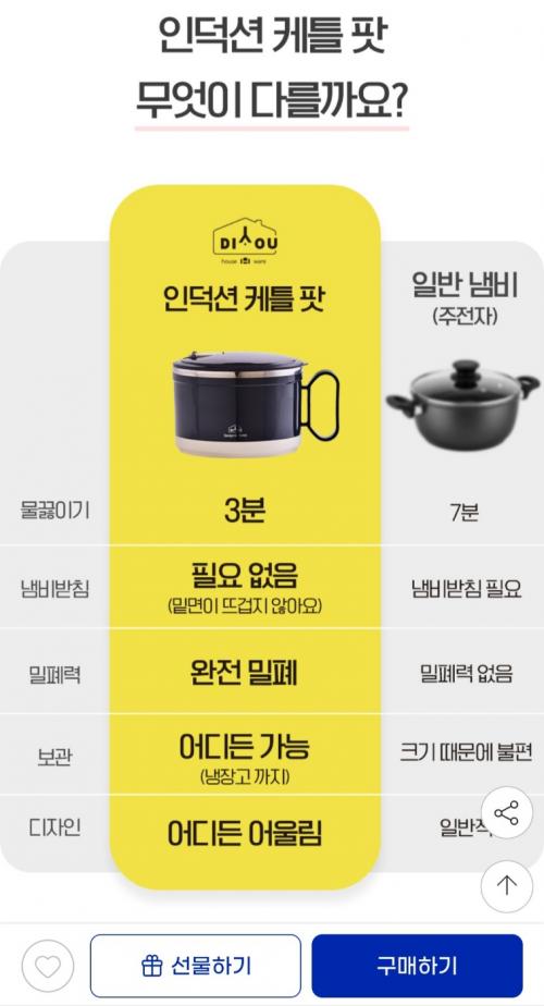 요리해먹기 편한 인덕션 전용 케틀 팟입니다.