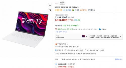 [쿠팡] 엘지 그램 17Z90S-GA5VK (1,441,300원/무료)