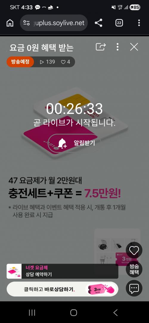 라이브 혜택으로 유심비 무료에 3만쿠폰, 4.5만 상당 배터리/충전기 세트도 주고요.