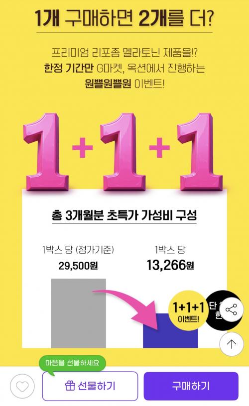 식물성이고 리포좀 제형이라 몸에 흡수 잘되는거에요 1+1+1 해서 총 3통에 39,800원입니다