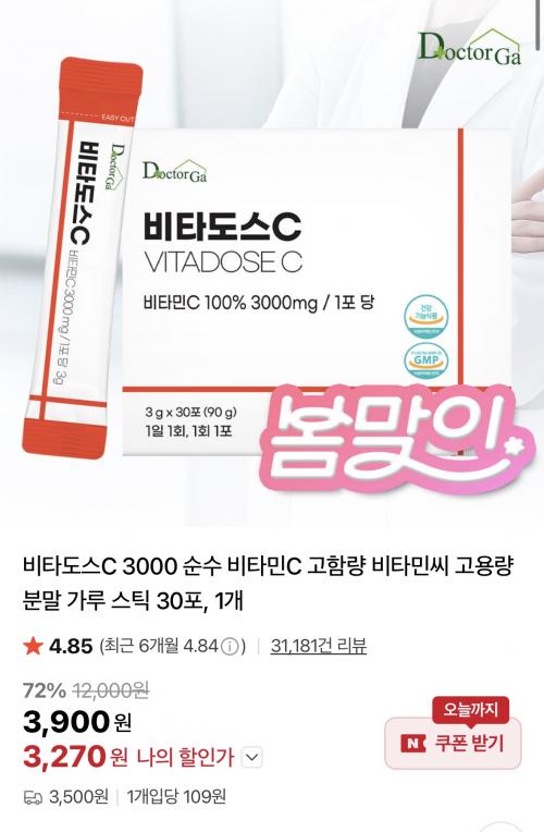 [네이버]비타도스C 분말 가루 스틱 30포 (3,270원/네멤무료) > 국내핫딜