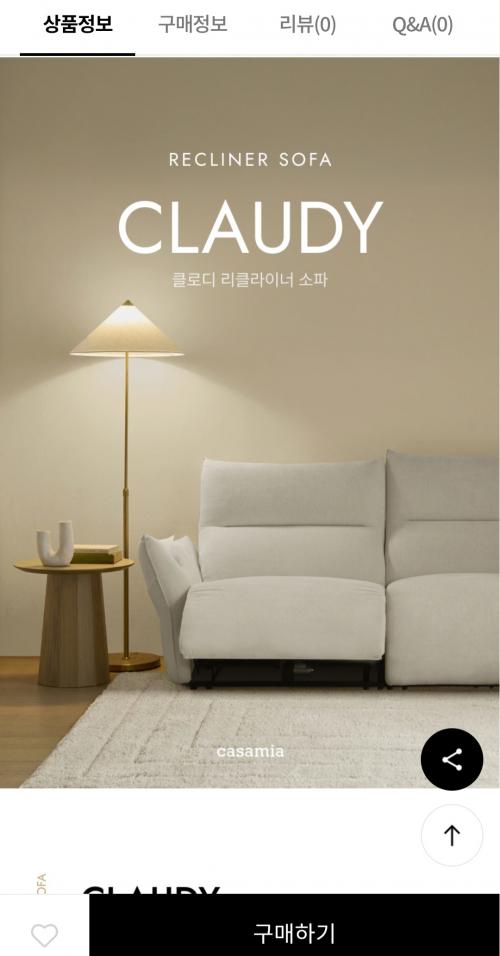 까사미아 신상 리클라이너 소파인데 까사미아몰 단독으로 31일까지 출시 기념으로 20%할인+10%추가 쿠폰 발급+구매확정시 포인트 4만원 페이백 지급