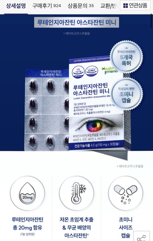 한캡슐 루테인 18.18mg + 지아잔틴 1.82mg + 아스타잔틴 4mg 든거라 1일 섭취량 충족 함량 좋습니다