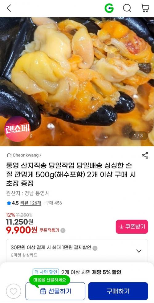 [지마켓] 손질 깐멍게 500g(해수포함) (9,900원 / 무료배송) > 국내핫딜
