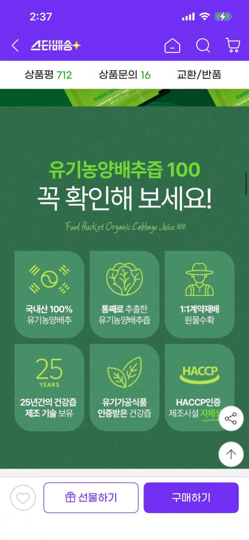 [지마켓] 유기농양배추 유기농 양배추즙 100포 (33,500원/무배) > 국내핫딜