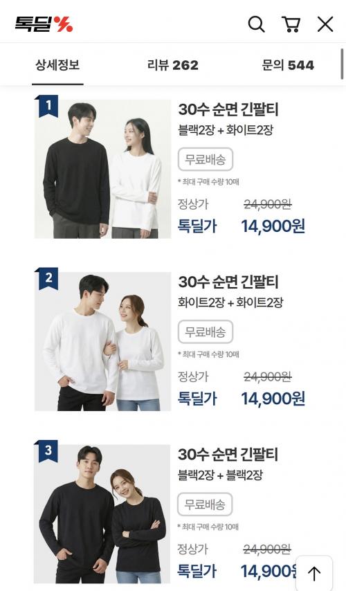 [톡딜] 2+2장 100% 순면 부드럽고 시원한 긴팔 티셔츠 (14,900원/무배) > 국내핫딜