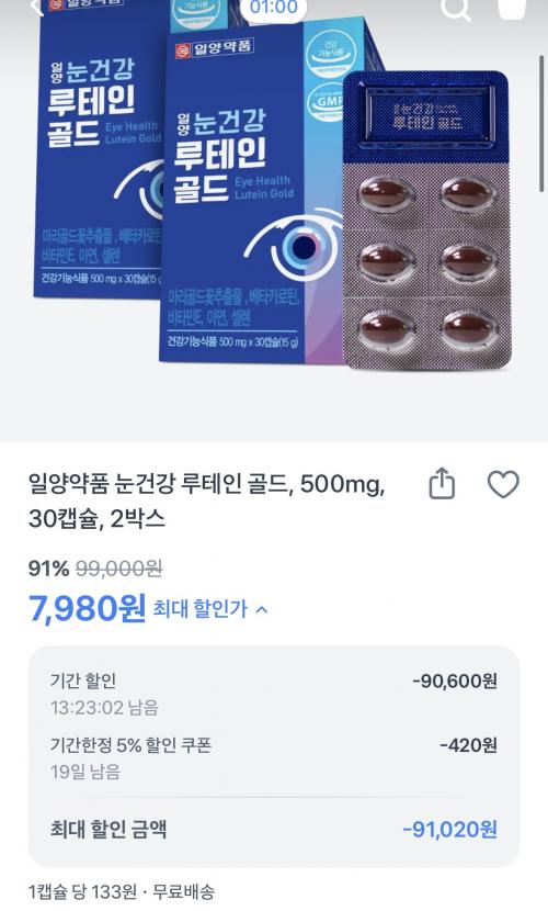 기간할인+5%추가할인쿠폰 적용하면 60캡슐에 7,980원입니다