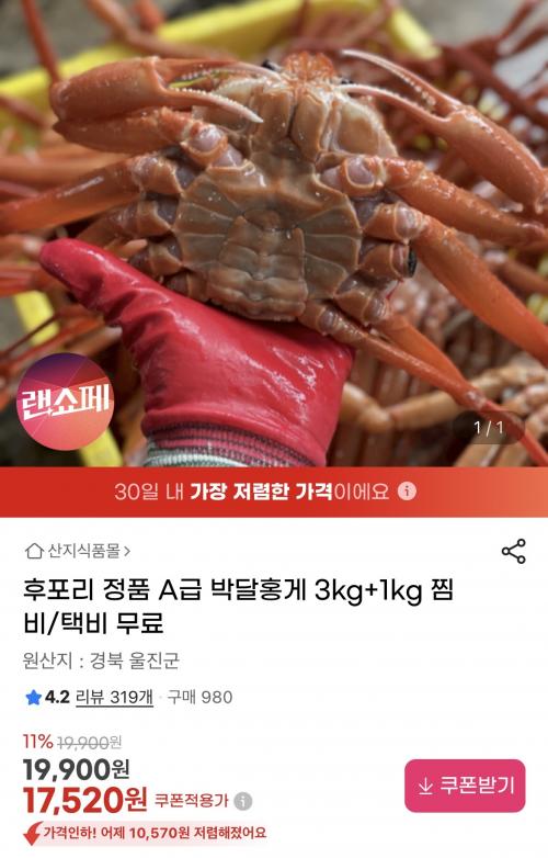 식감 단단한고 살맛 좋은 박달홍게 핫딜이요