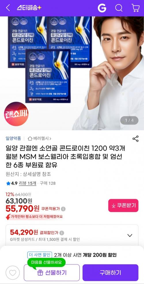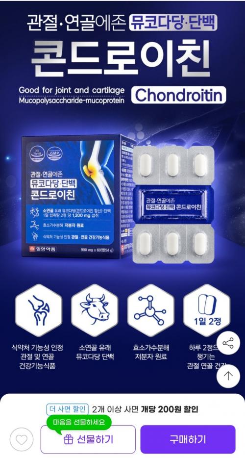 [지마켓] 무릎, 관절에 좋은 일양 콘드로이친 3개월분 (55,790원 / 무료배송)