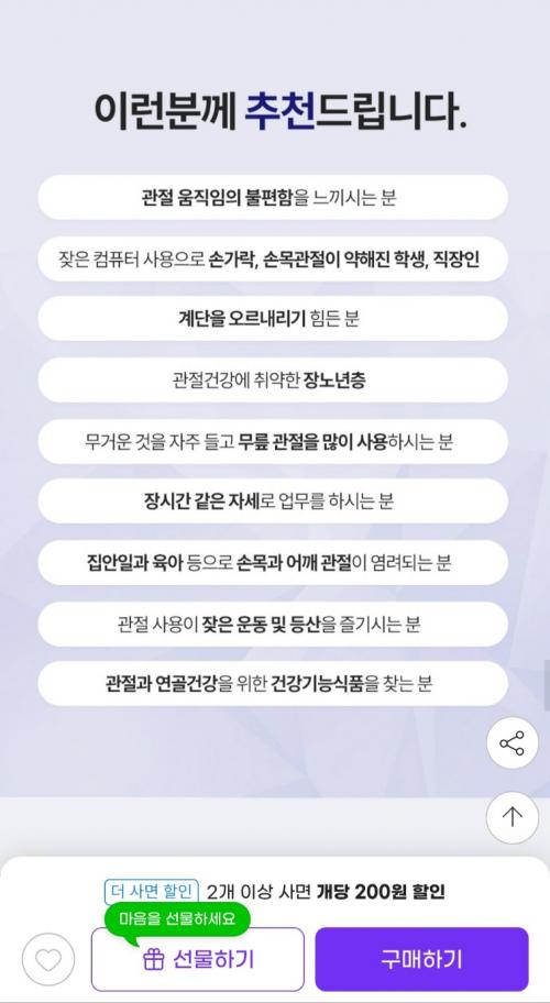 가격 대비 함량도 높은 편이고 손목, 무릎 불편한 분들에게 좋습니다.