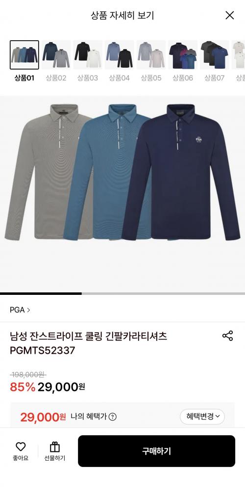 [롯데온] PGA 남성 잔스트라이프 쿨링 긴팔카라티셔츠 (29,000원/무료)