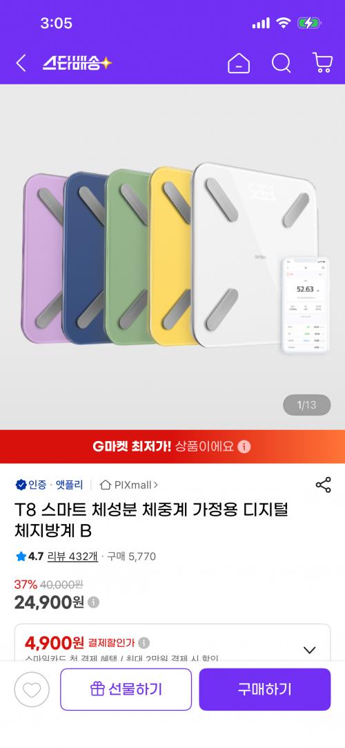 [지마켓] 스마트 체성분 체중계 가정용 디지털 체지방계 (24,900원/무료) > 국내핫딜