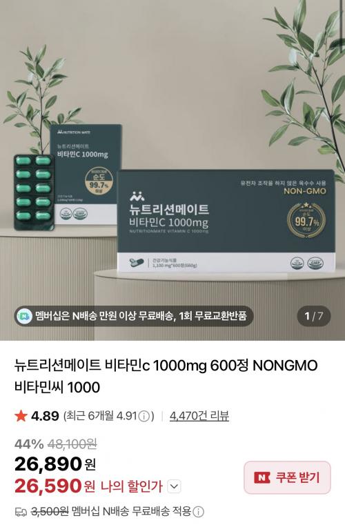 비타민C 1000mg / 논지엠오 옥수수 원료 /순도 99.7% 프리미엄원료