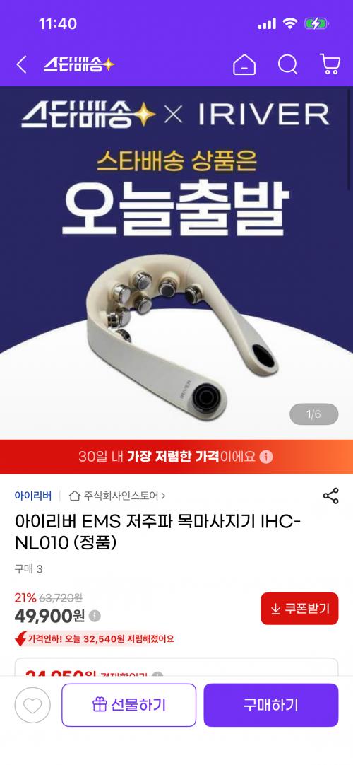 [지마켓] 아이리버 EMS 저주파 목마사지기 (49,900원/무배) > 국내핫딜