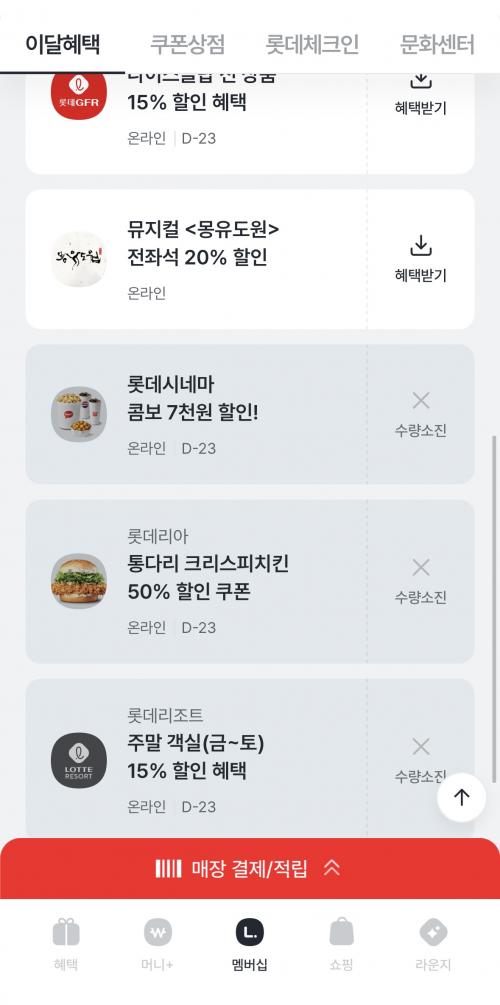 엘포인트 어플 들어가서 이달혜택 클릭하면