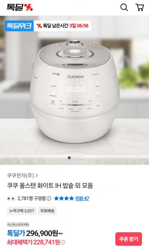 [카카오] 쿠쿠 IH 전기압력밥솥 (228,738원/무료배송) > 국내핫딜
