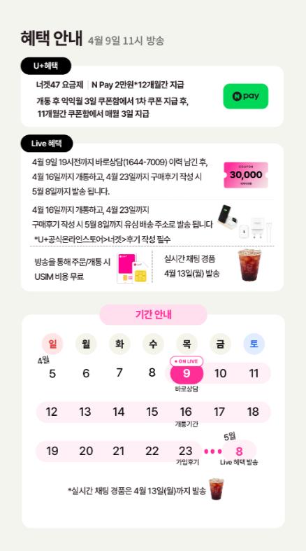 라이브 통해서 가입하면 유심비, 3만 쿠폰, 충전 세트 추가로 주고..