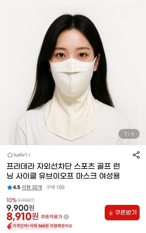 [지마켓]프라데라 자외선차단 스포츠 골프 유브이오프 마스크 여성용(8,910원/무배) > 국내핫딜