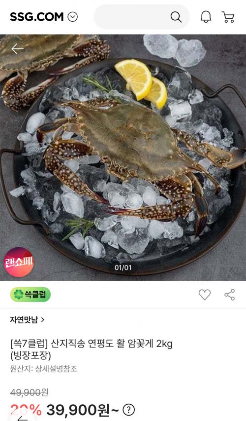[ssg] 산지직송 연평도 활 암꽃게 2kg 빙장포장 (35,112원/무료)